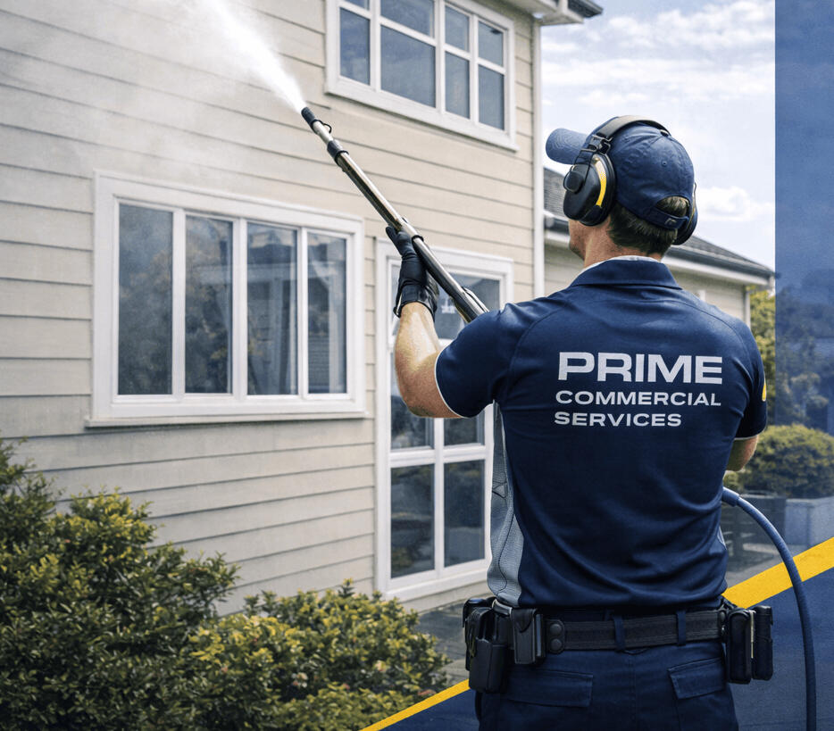 Prime Commercial Services delivers professional exterior cleaning and waterblasting for commercial and residential properties, specialising in reliable, high-quality building washing and maintenance across Tauranga.